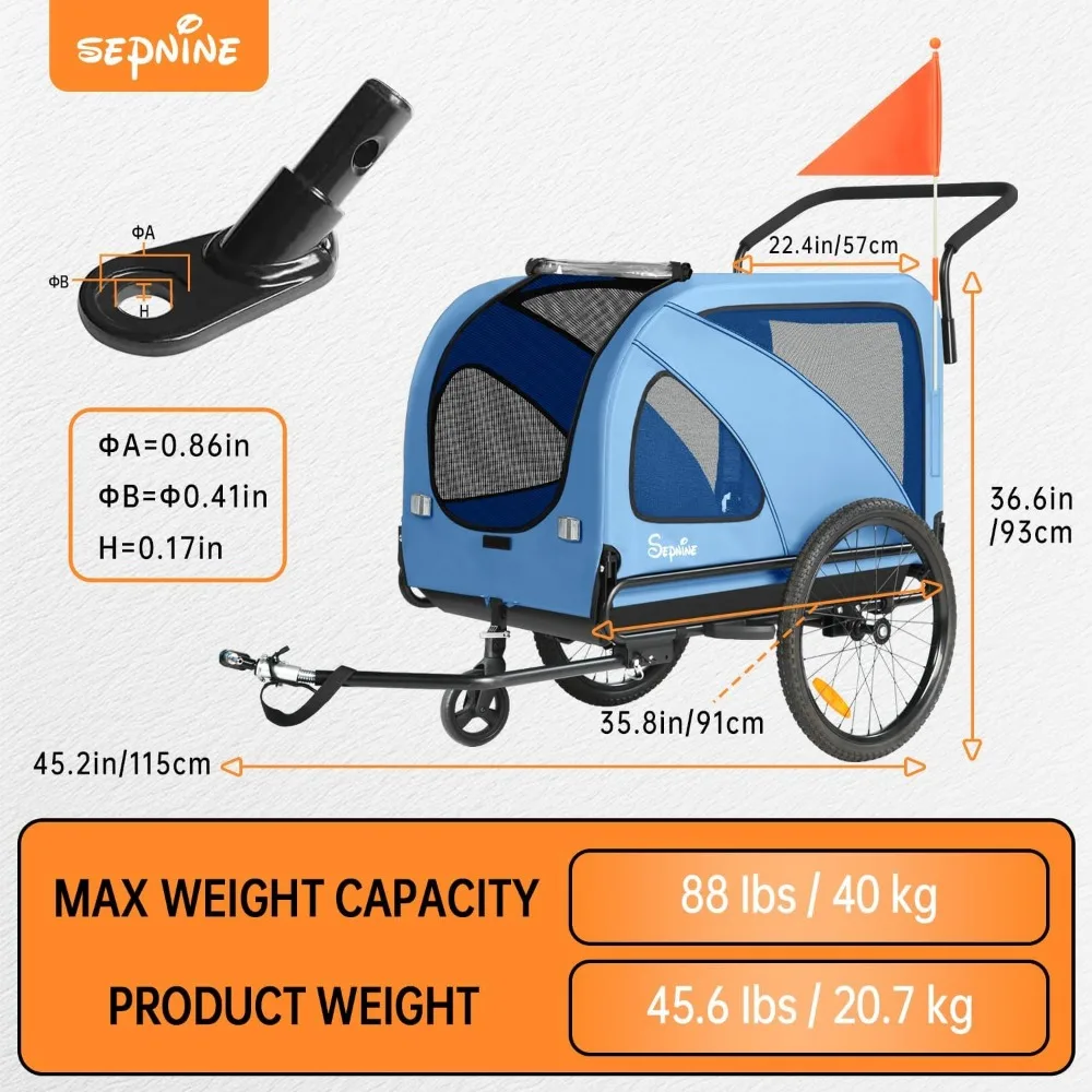 - 2-in-1 Design: The dog bike trailer effortlessly transitions from a bike trailer to a jogging stroller, making it the perfect companion for leisurely bike rides and active jogging sessions. With a maximum weight capacity of 88 pounds/40 kilograms, it's the ideal choice for taking your furry friend on adventures