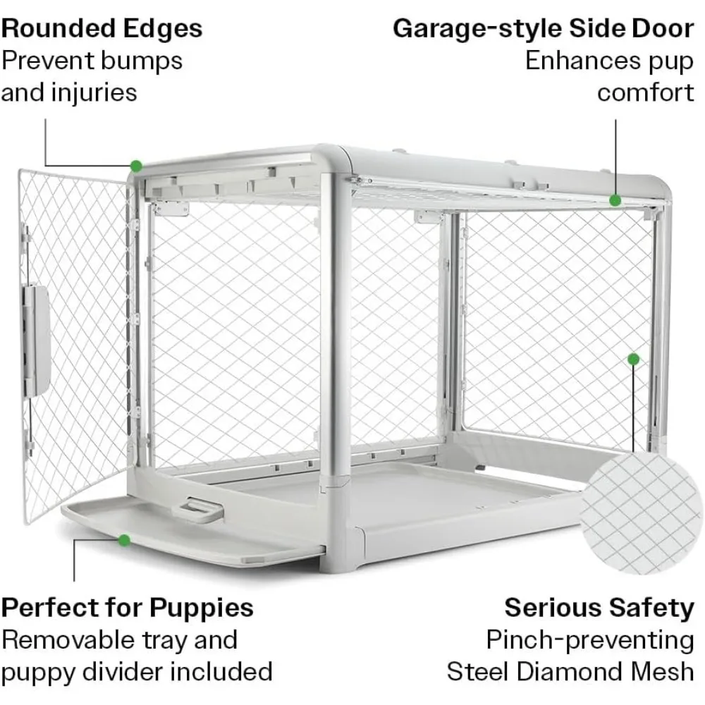 - PERFECT FOR PUPPIES: Includes removable tray for easy cleaning, ceiling hatch for easy access, and puppy divider