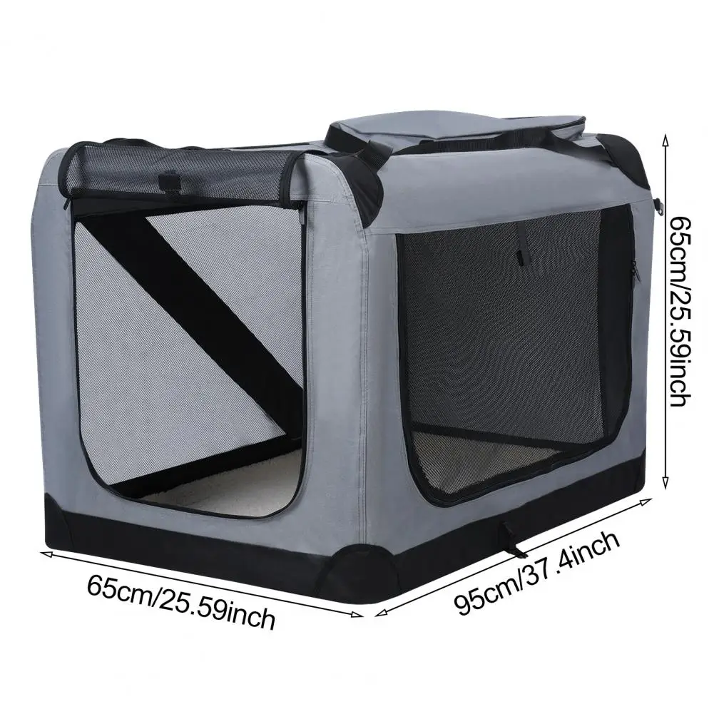 Spacious Space: As pet owners, we know that traveling with a furry friend can be a challenge, especially when it comes to finding a crate that fits their size and needs. Our large dog crate measures 95CMx65CMx65CM, perfect for medium and large dogs, providing plenty of room for your furry friend to move and stretch.