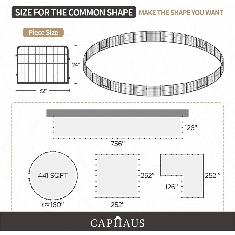 🐕 This option has 32 panels, dimension for each panel is 23.62 inches x 31.5 inches (height x width). The interactive and expandable playpen design for pets provides overall area size 441 square feet of enclosed area for pets, ensuring that they have enough room for playing and exercising; firm and hard to be damaged by pets.