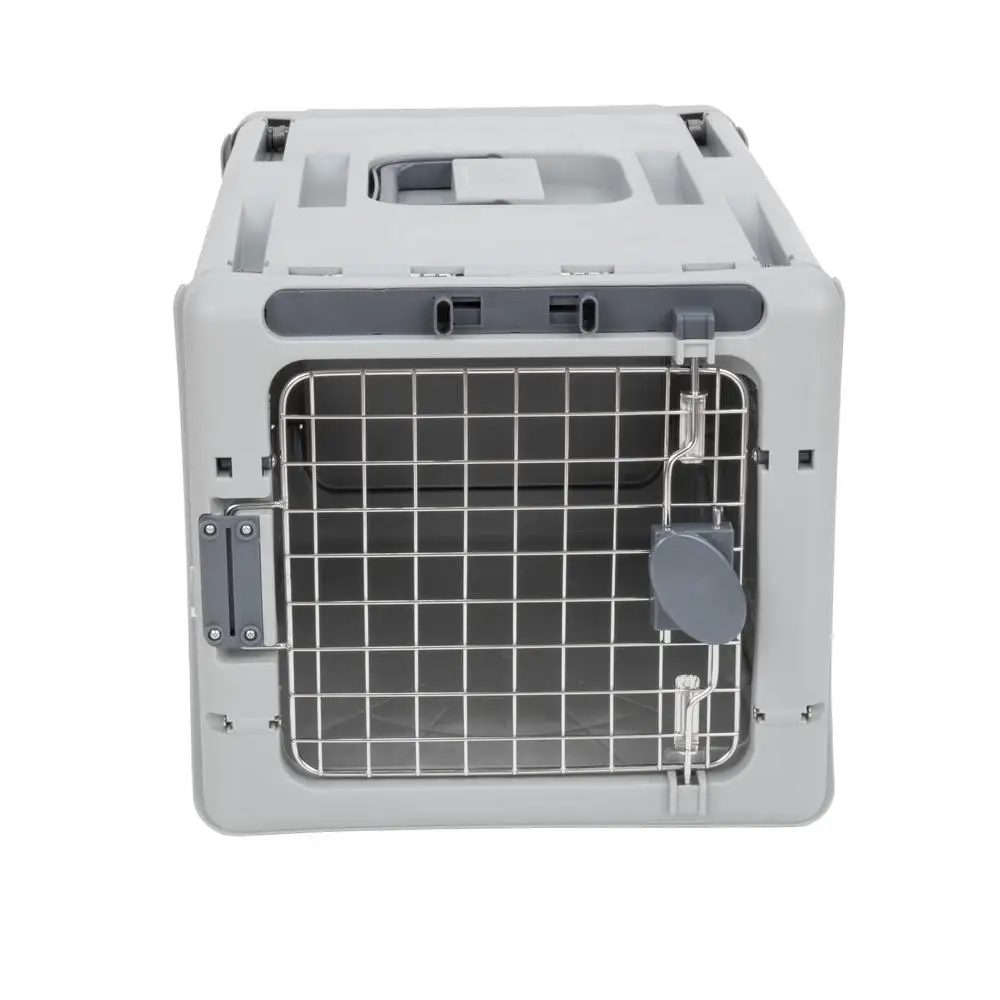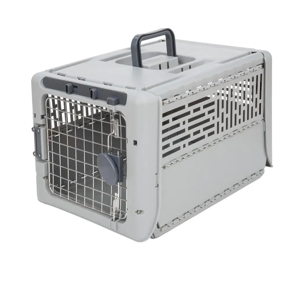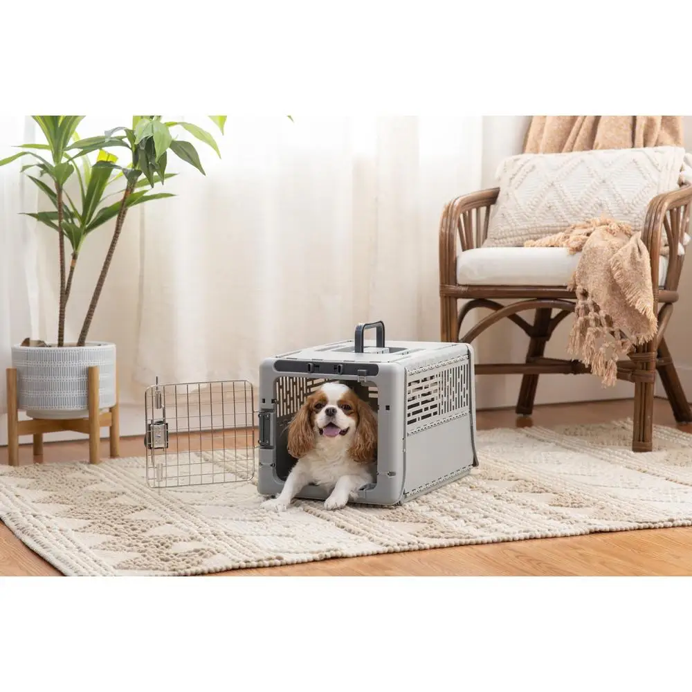 Portable Dog Kennel Collapsible Plastic Small 19" Lightweight Durable Ventilated Gray