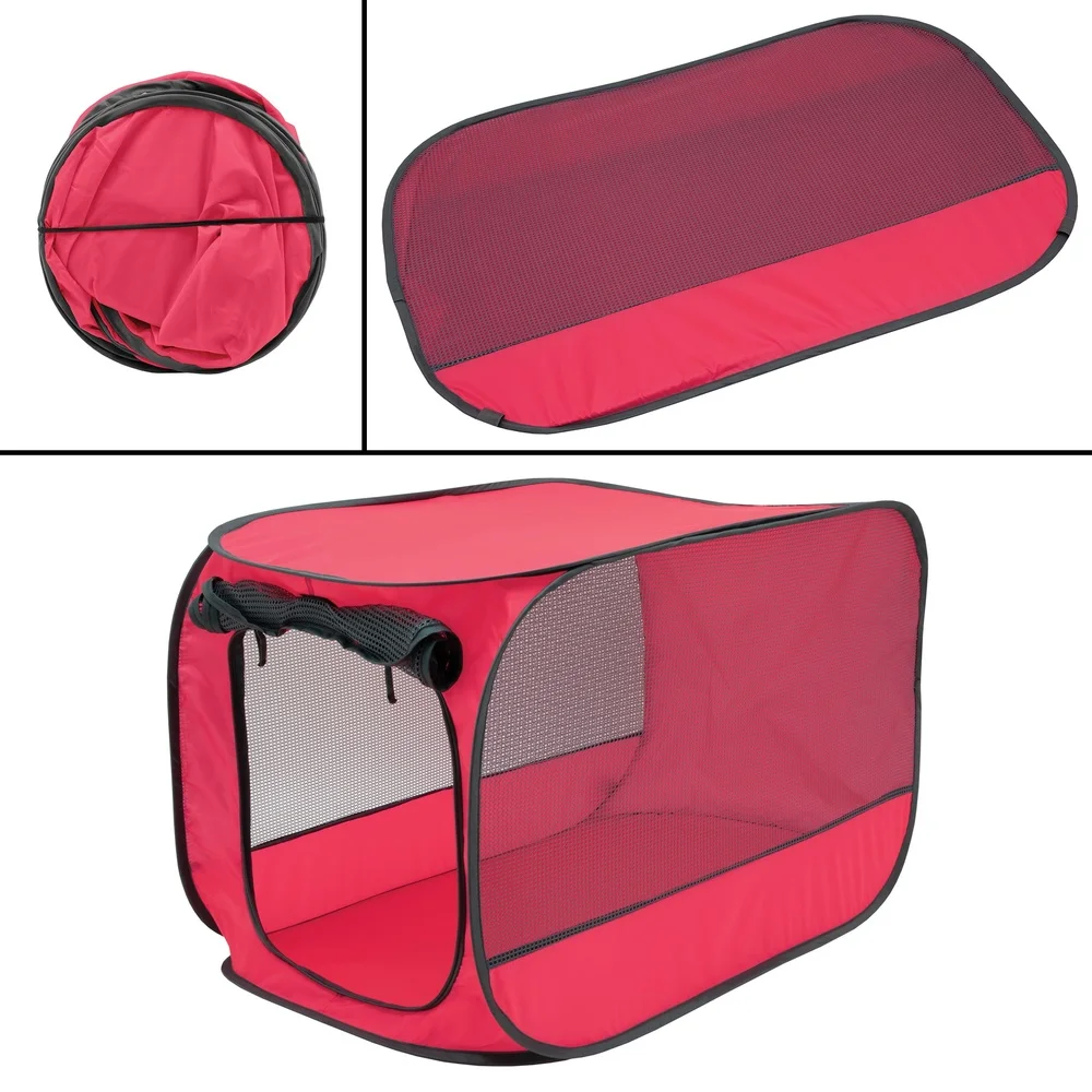 Soft-Sided 32" Pop-up Mesh Dog Kennel, Red, Medium